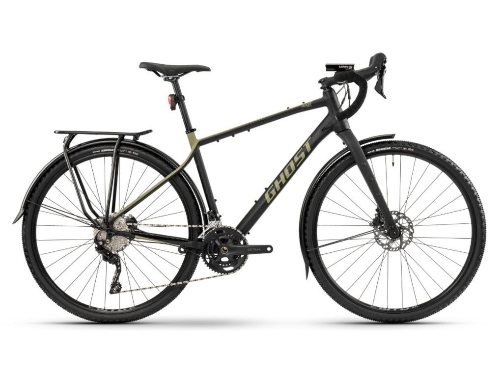 Efektivní přenos síly, stabilita a odolnost. To je gravel bike s offroadovými geny GHOST Asket v minimalistickém designu s chytře zvolenými komponenty. | GHOST Asket přináší nový a svěží vítr mezi gravel-biky. Postavený na hliníkovém, více uvolněně a dobrodružně pojatém rámu a pevné karbonové vidlici nabízí standardní gravelové obutí Maxxis Ravager 700x40c. Díky delší vidlici má výše položené hlavové složení, zatímco zadní část rámu se znatelně svažuje. Hravá geometrie přímo vybízí k otestování na štěrkovitém terénu. Jeho výbavu tvoří pohon Shimano GRX 2×10 převodů a výkonné brzdy Shimano. Varianta EQ je navíc doplněna o světla, praktické blatníky a nosič. Osedlejte Asket a vyzkoušejte jeho stabilitu a odolnost!