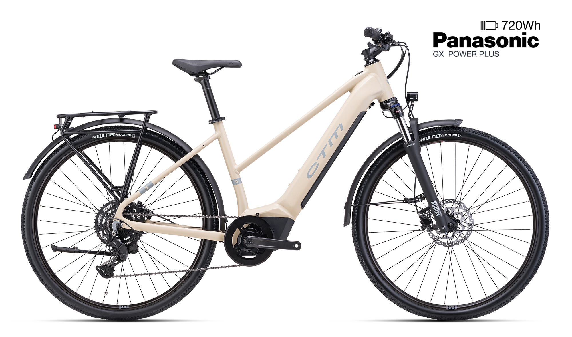 Dámsky crossový elektrobicykel, ktorý je určený na klasickú cykloturistiku, no nezľakne sa ani ľahkého terénu. Pomocnou silou je japonský elektromotor Panasonic GX Power Plus, ktorý je navrhnutý pre optimálny prenos sily pri šliapaní. Poskytuje výkon 250W a krútiaci moment až 75Nm. Dostatočnú zásobu energie na dlhé výlety zabezpečí batéria s článkami LG, ktorá má kapacitu 720Wh a je plne integrovaná v ráme bicykla. Úplne dobitie dosiahne už za cca. 5-6 hodín. Tento systém poskytuje dojazd 60-140km – podľa zvoleného stupňa podpory. V teréne nárazy stlmí odpružená vidlica Suntour XCM32, o bezpečnosť sa starajú hydraulické brzdy Shimano MT200 a so všetkými druhmi nerovností si poradia odolné kolesá WTB STi23 s plášťami WTB Riddler. Súčasťou výbavy je kompletné osvetlenie napájané z batérie a ovládané priamo z riadidiel, integrované blatníky, zadný minimalistický nosič a kompaktný stojan.