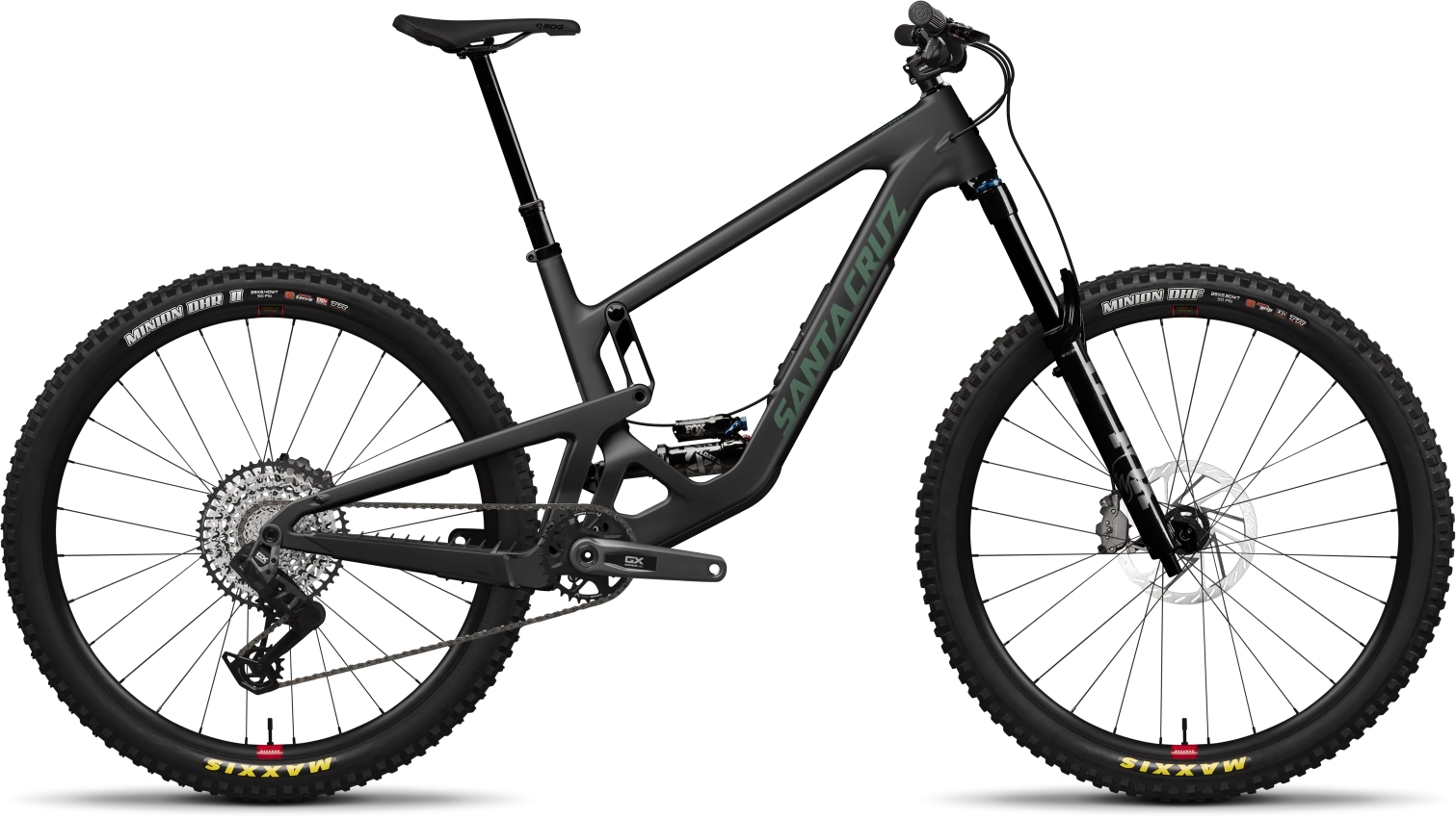 Celoodpružené horské kolo Santa Cruz Hightower na karbonovém rámu se zdvihem 150 mm vzadu a 160 mm vpředu, 29palcovými koly, odpružením FOX a bezdrátovou elektronickou sadou Sram GX AXS 1×12 T-Type.