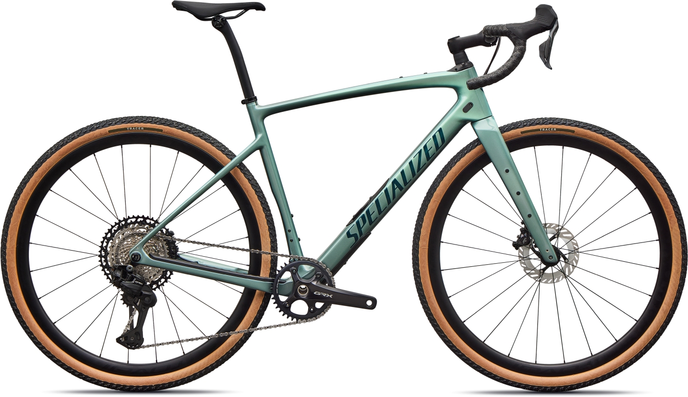 Gravel kolo Specialized Diverge 4. generace je postaveno na karbonovém rámu Fact 9r Carbon s vysokou průchodností plášťů a prostorným úložným prostorem SWAT. Kokpit je odpružen nejnovější generací Future Shock 3.2 pro hladkou a rychlou jízdu. Rám je osazen elektronickou sadou Shimano GRX 1×12 Di2 a karbonovými výplety Roval Terra C.