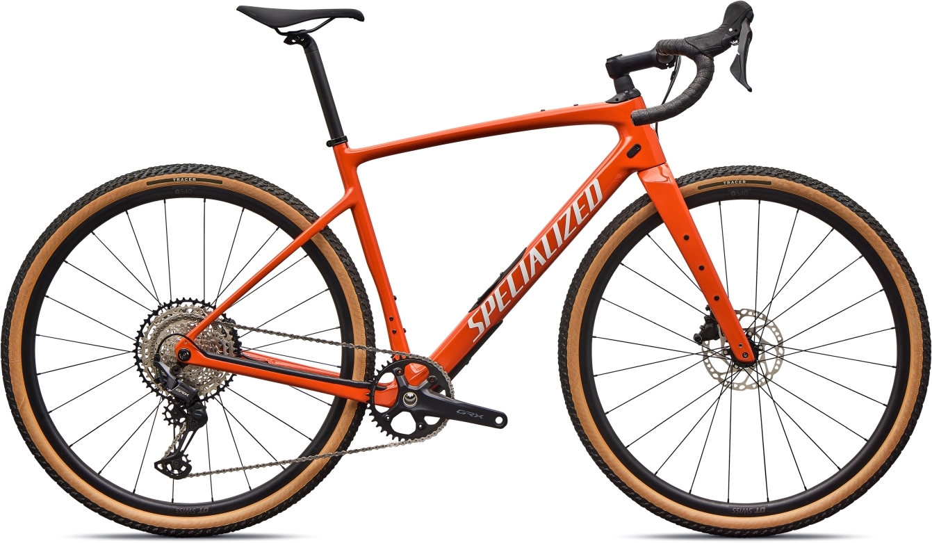 Gravel kolo Specialized Diverge 4. generace je postaveno na karbonovém rámu Fact 9r Carbon s vysokou průchodností plášťů a prostorným úložným prostorem SWAT. Kokpit je odpružen nejnovější generací Future Shock 3.1 pro hladkou a rychlou jízdu. Rám je osazen spolehlivou mechanickou sadou Shimano GRX 1×12.