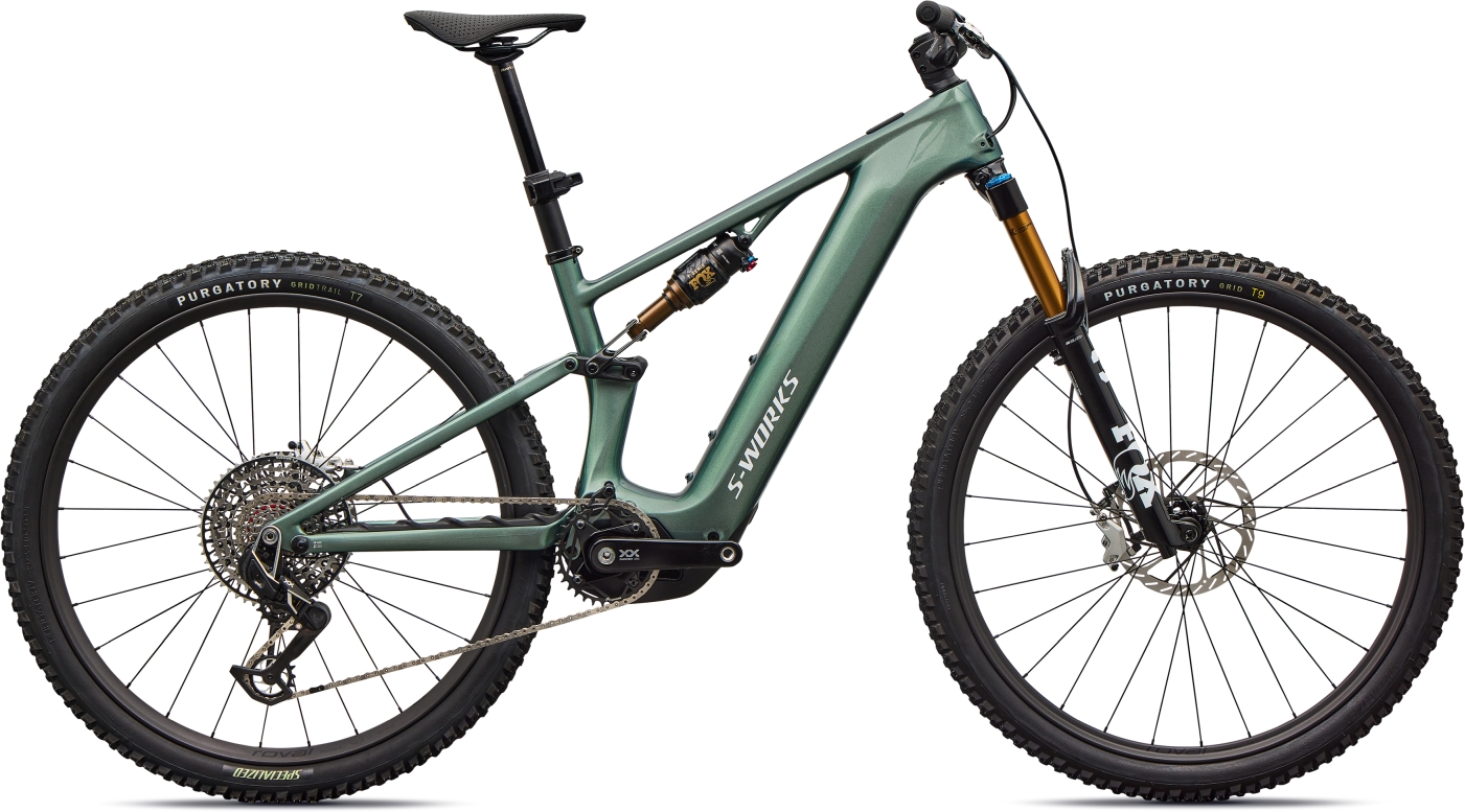 Nejvyšší specifikace elektrokola Specialized S-Workas Levo R s motorem Specialized 3.1 a integrovanou baterií 840 Wh. Odpružení FOX 140/130 mm, bezdrátové řazení SRAM XX Transmission, karbonové kliky, kokpit a 29" karbonová kola Roval.