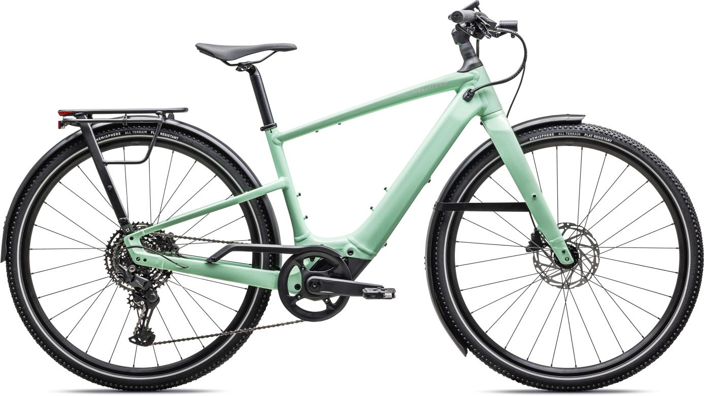 Univerzální městské elektrokolo Turbo Vado SL 2, s ultralehkým hliníkovým rámem, odpružením kokpitu Future Shock, lehkým elektromotorem SL s přirozenou podporou a ergonomicky promyšlenou polohou posedu. Kolo je navíc vybaveno světly, blatníky, nosičem a stojánkem.