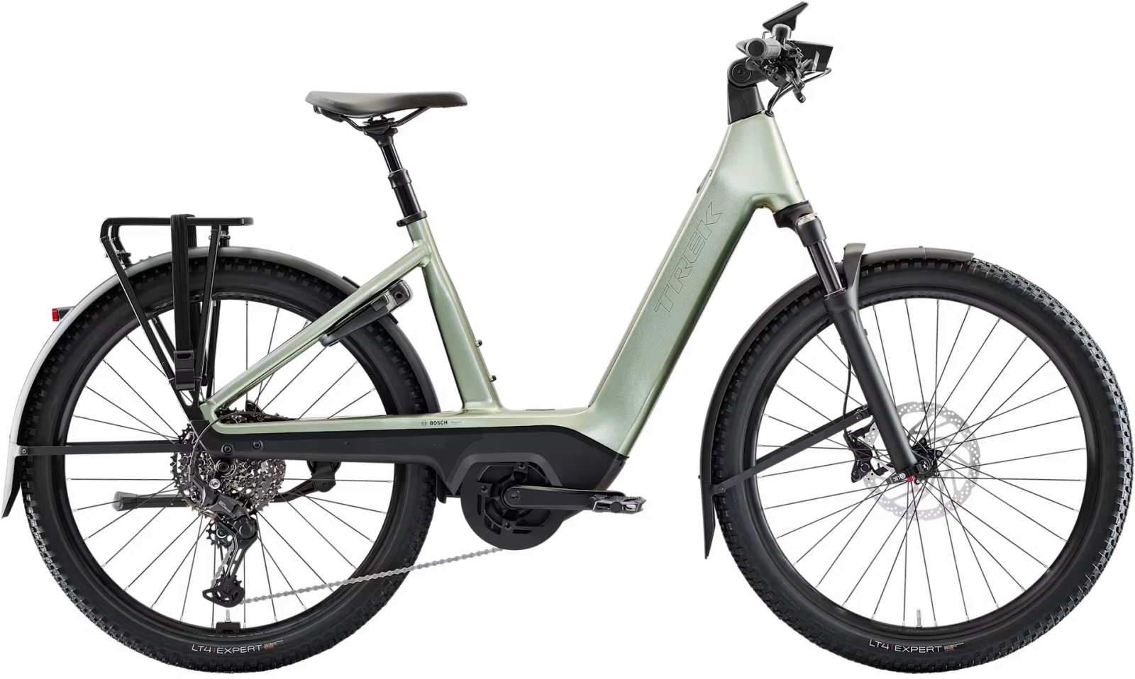 Trek Charter+ Trail 540Wh Lowstep je městské elektrokolo se sadou Shimano CUES s devíti rychlostmi, pružinová vidlice se zdvihem 80 mm, kola a pláště do terénu a rovná řídítka po stranách zvýšená o 5 mm se postarají o to, abyste se mohli vydat i mimo asfalt a pohodlně přejíždět obrubníky a výmoly. Díky motoru Bosch Performance Line s 540Wh baterií budete mít dostatek energie na dojíždění i víkendové výlety.